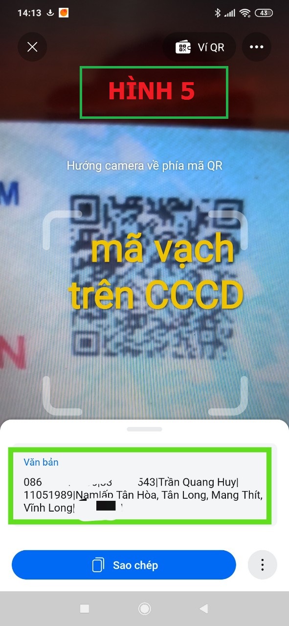 - Cái mã QR code trên cccd của con nhỏ này là giả, nên không quét được gì hết. Mọi người xem kết quả khi tui quét cccd của chính tui đây (hình 5).